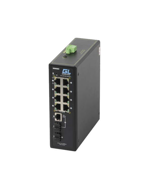 Индустриальный на DIN рейку, 8 PoE (802.3af/at) портов 100Мбит/с, 2 комбо SFP/1000BaseT, 48В (питание поставляется отдельно), суммарная мощность РоЕ 240Ватт