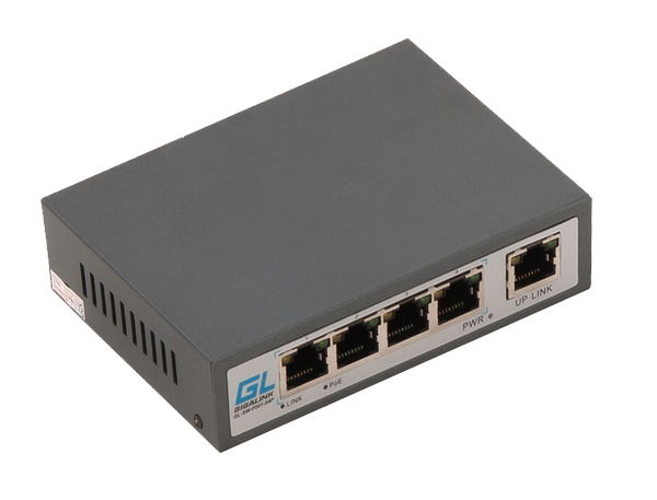 4 PoE (802.3af) порта 100Мб/с, 1 Uplink порт 100Мб/с, до 150м, 60Вт