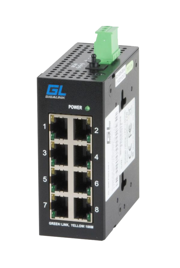 Неуправляемый, индустриальный на DIN рейку, 8 x 10/100 mbs, питание 12-57В, 10 Ватт (питание поставляется отдельно)