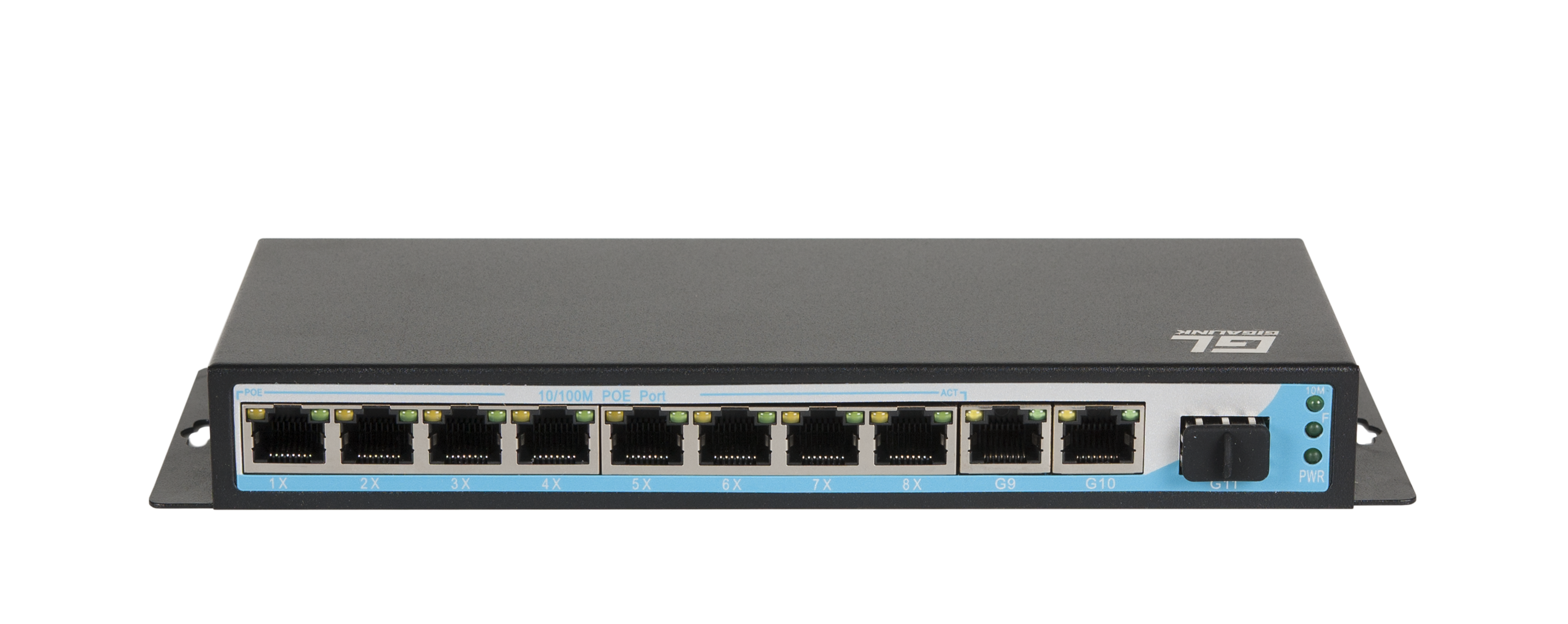 Коммутатор GIGALINK, неуправляемый, 8PoE(802.3af) порта 10/100Мб/с до 250метров, 2*10/100/1000Мб/с + 1*SFP 1000Мб/с, 120Вт