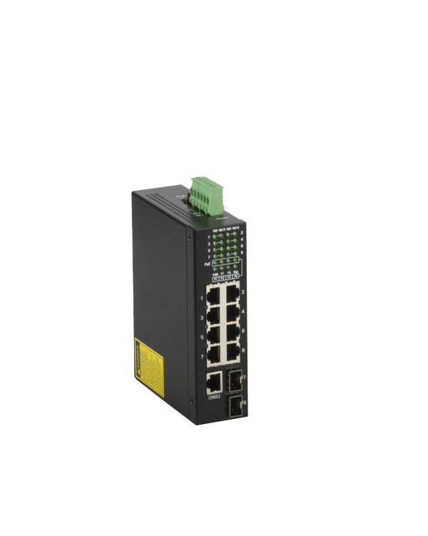L2 управляемый, индустриальный на DIN рейку, 6 10/100/1000 Мбит/с, 1-4 порт PoE af 15.4Вт, 2 комбо (RJ45/SFP), питание 48В (блок питания поставляется отдельно 60 Ватт)